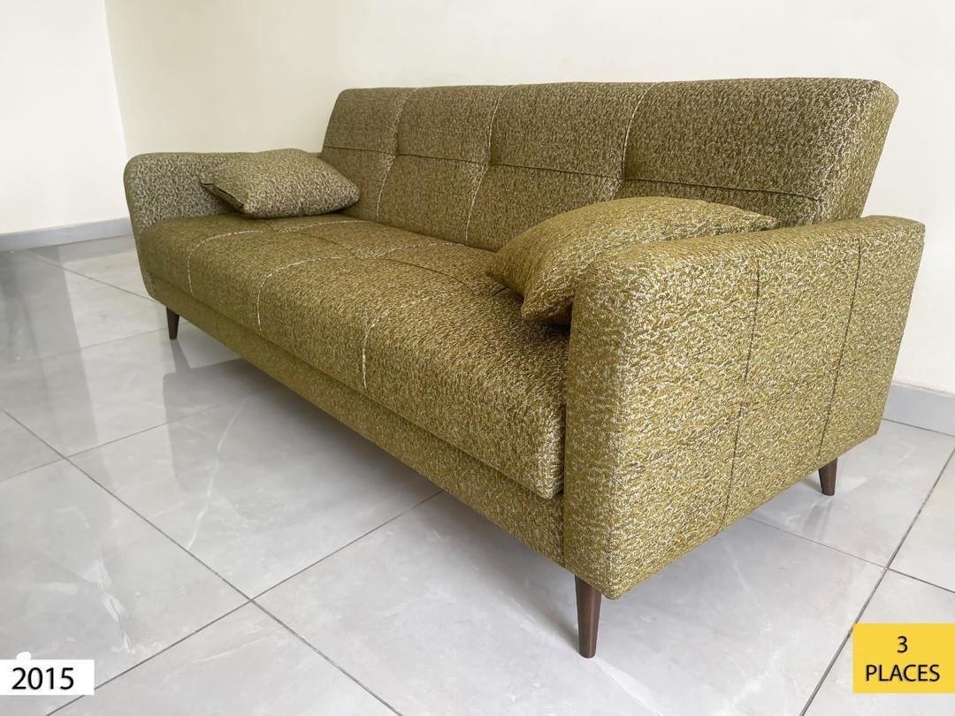 Canapé en tissu de 3 places composé de pliables en lit avec coffre pour rangement .