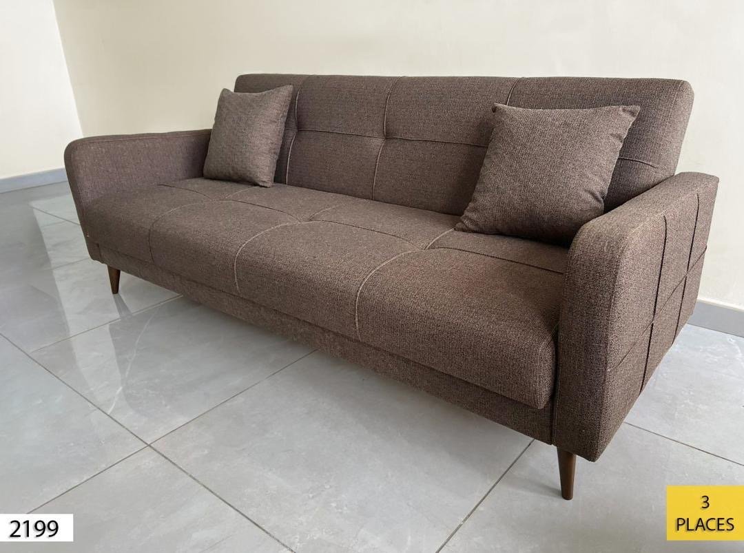 Canapé en tissu de 3 places composé de pliables en lit avec coffre pour rangement .