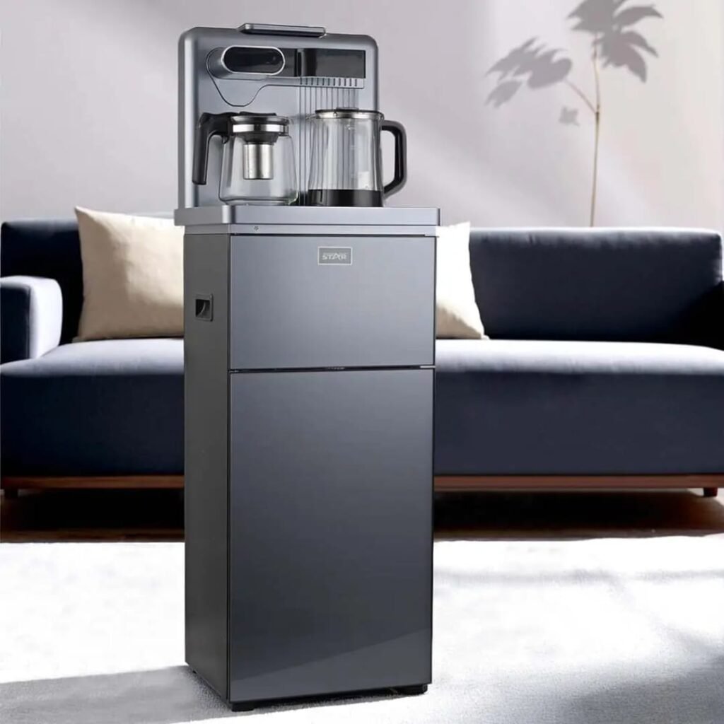 Fontaine avec frigo et rangement tasse avec option eau fraîche et chaude.