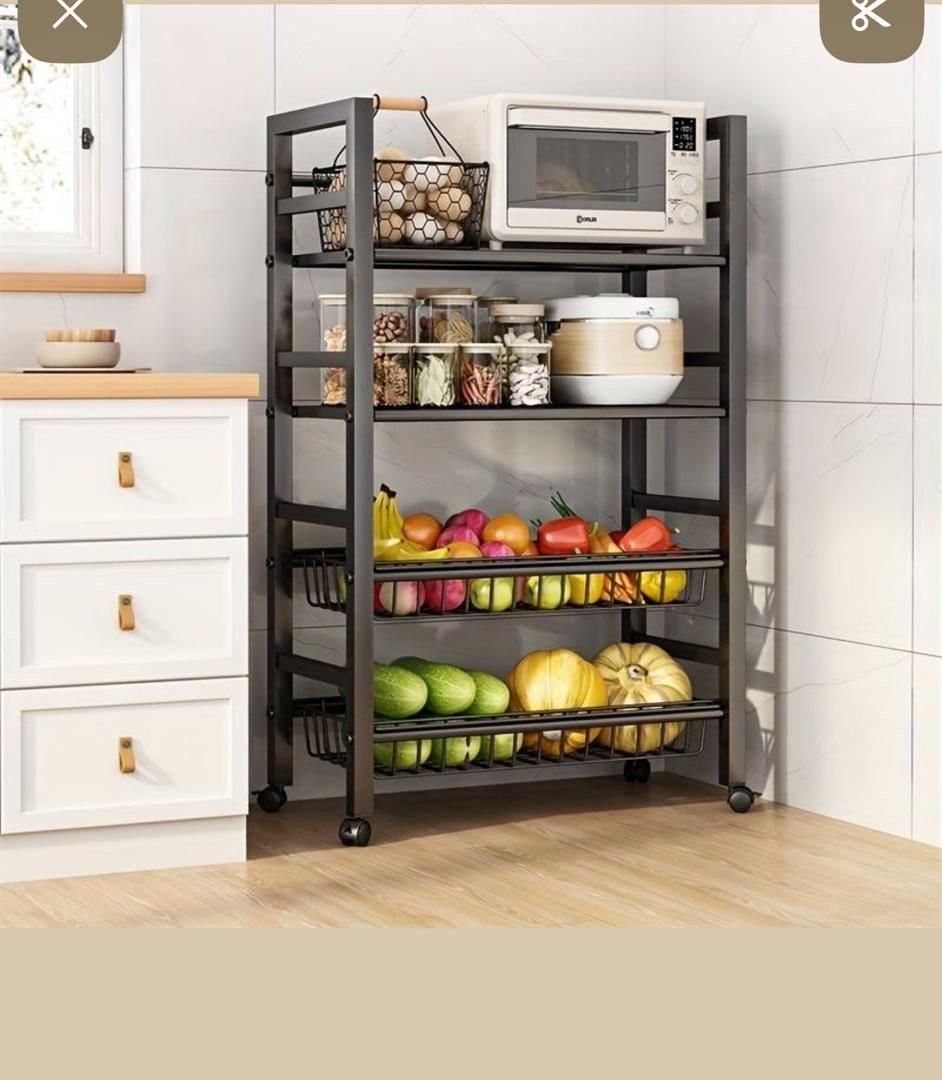 Cet étagère est conçu pour vous facilité une organisation dans vos cuisine des étagères avec des espaces à mettre un micro ondes ou matériels électroménagers.