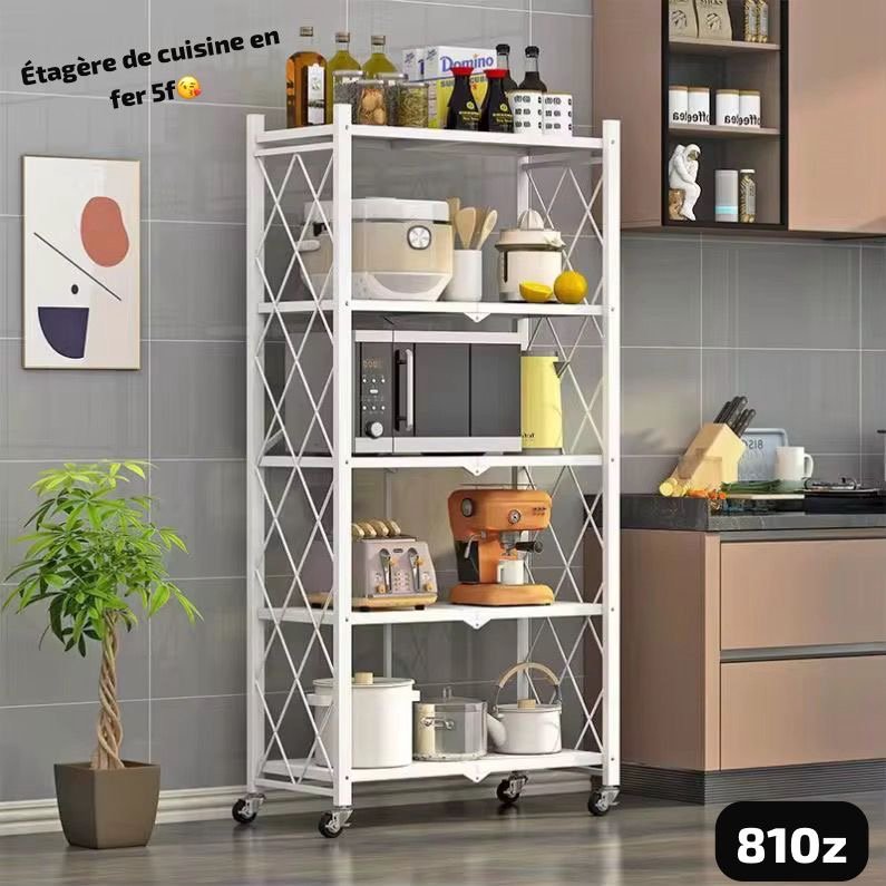 Cet étagère est conçu pour vous facilité une organisation dans vos cuisine des étagères avec des espaces à mettre un micro ondes ou matériels électroménagers. Avec des roues pour mieux le déplacer