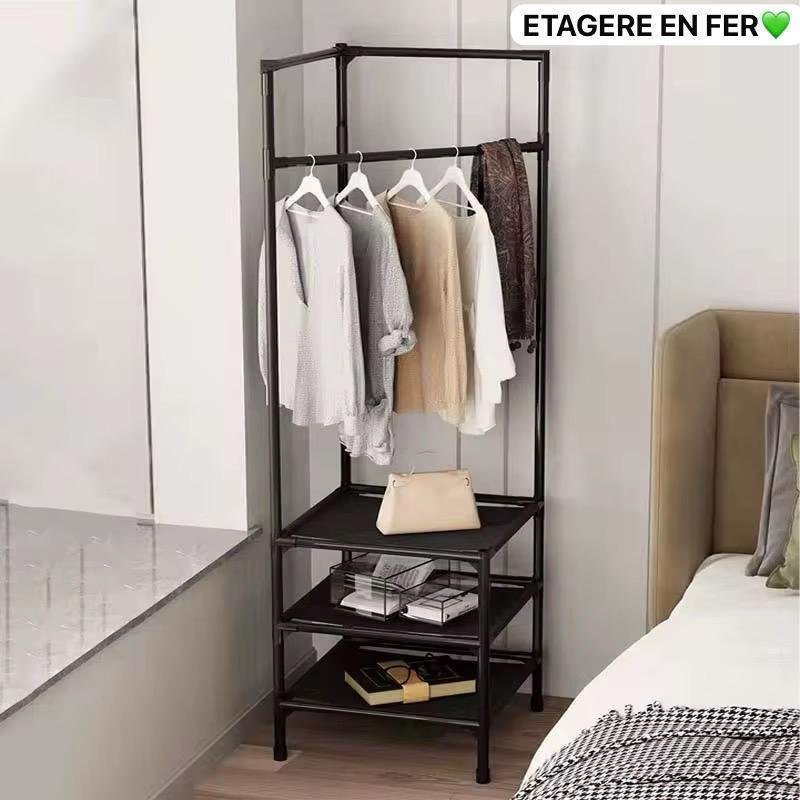 Porte manteau avec étagères de Rangement pour Chaussures Etendoir à Vêtements pour Chambre à Coucher et Entrée de Bureau