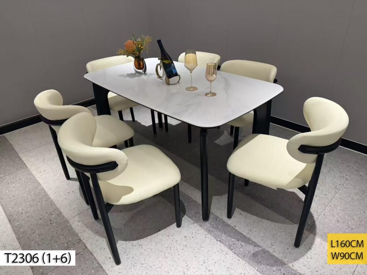 Type de produit: Table à Manger ; Référence: T2306 ; Nombre de places: 6 ; Couleur: Blanc ; Dimension: L160cm*W90cm