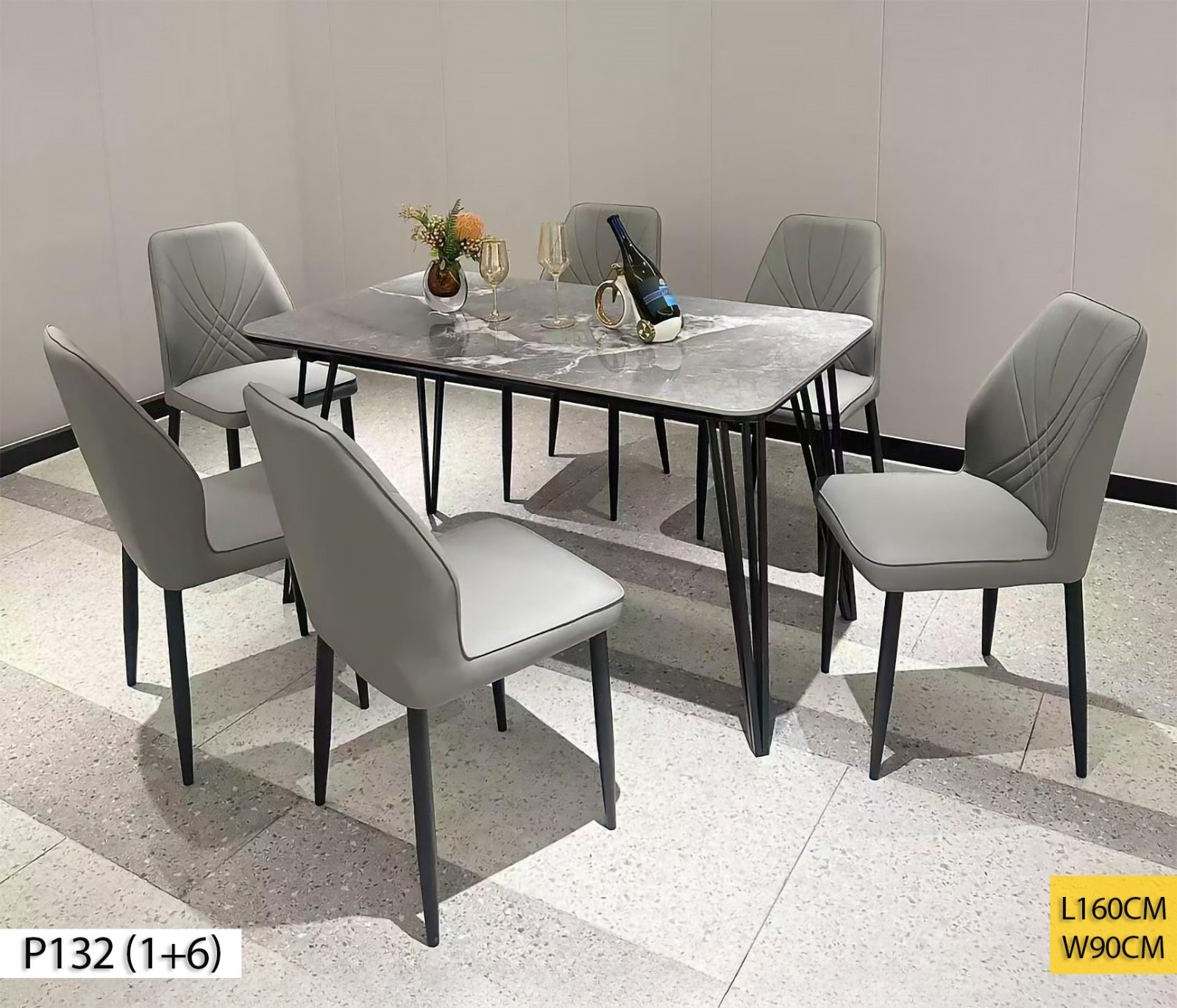 Type de produit: Table à Manger ; Référence: P132 ; Nombre de places: 6 ; Couleur: Gris ; Dimension: L150cm*W90cm