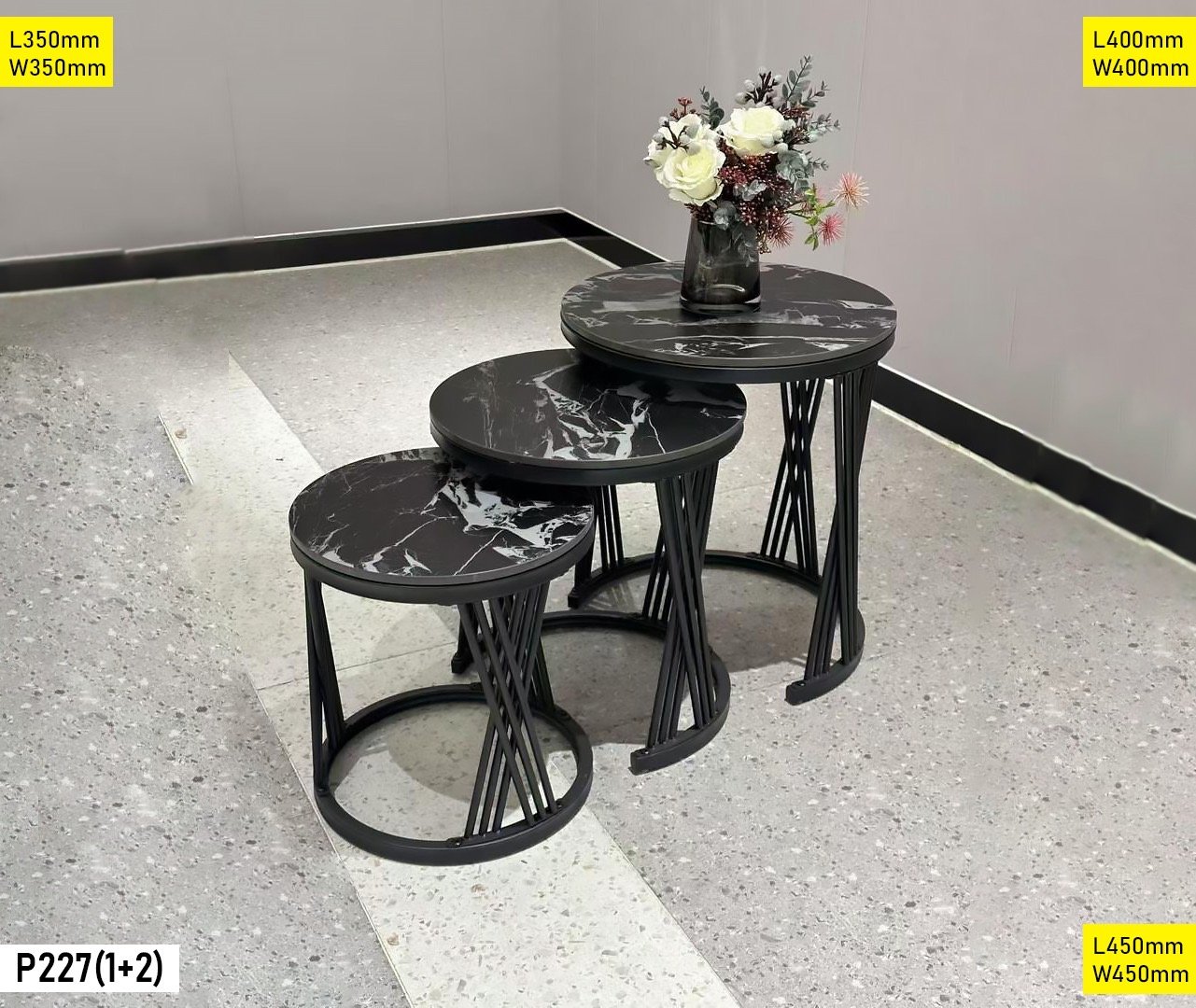 Table Basse 3 pièces en marbre noire et blanche