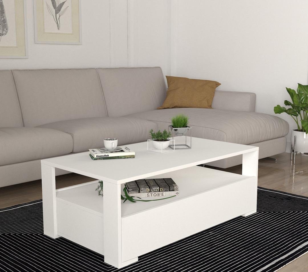 Table basse adéquat pour un salon ou espace de détente . Style moderne en blanc .