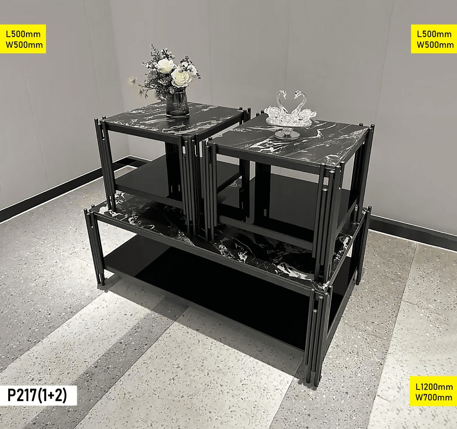 Table basse adéquat pour un salon ou espace de détente . Style moderne en noire marbré.