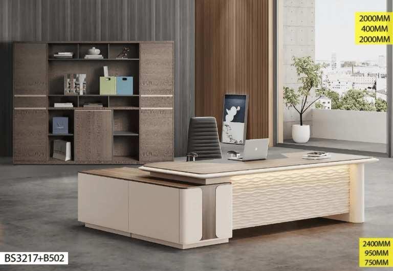 Type de produit: Table Bureau+Bibliothèque ; Référence: BS3217+B502 ; Couleur: Beige ; Dimensions: L2400*W950*H750mm