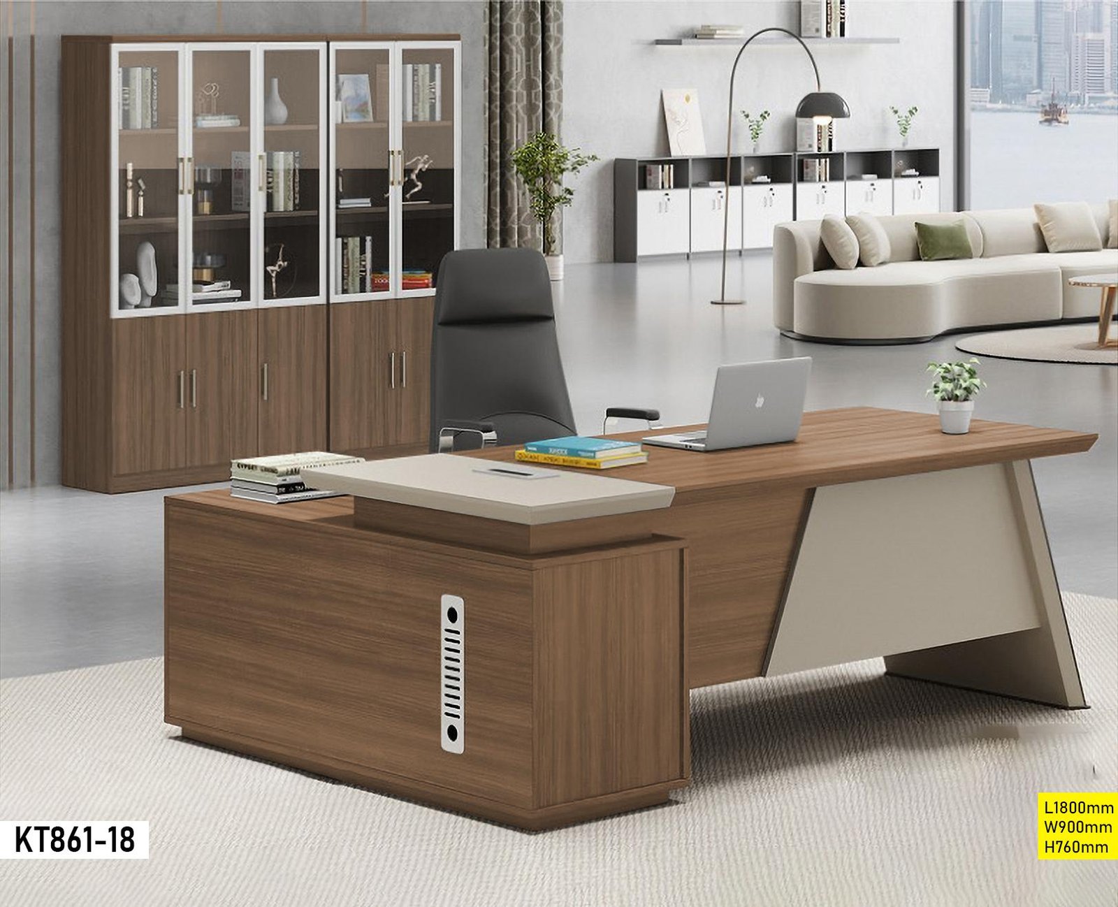 Table bureau directeur en bois moderne couleur marron beige avec retour