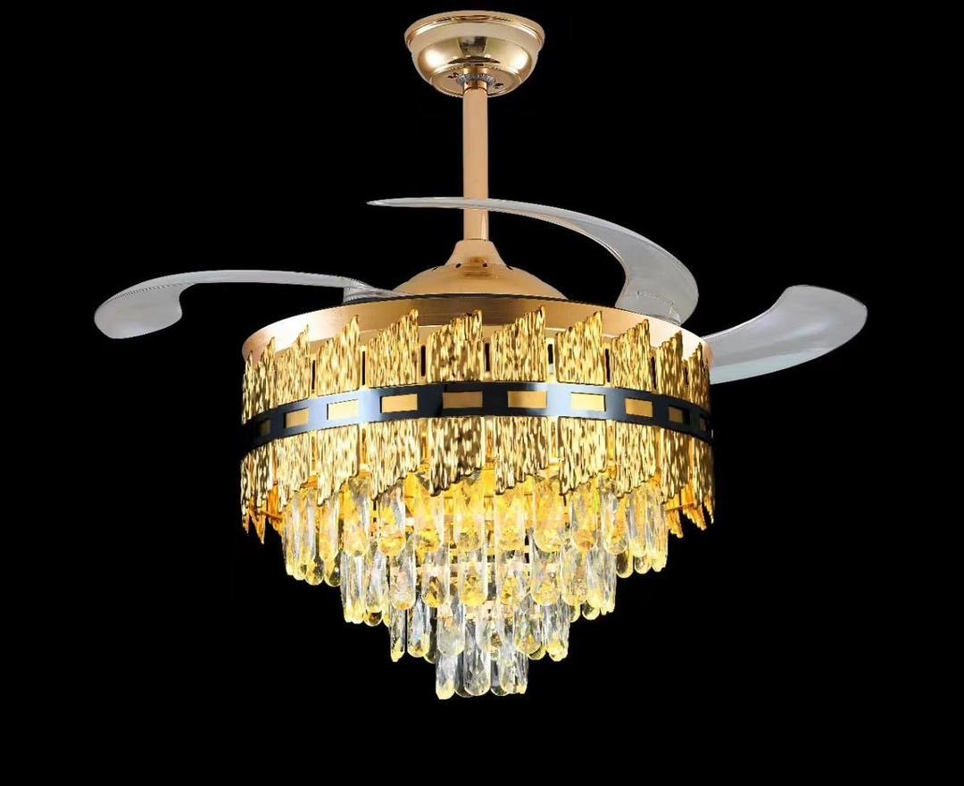 Ventilateur Plafonnier avec Lampe de Haute Éclairage Dorée